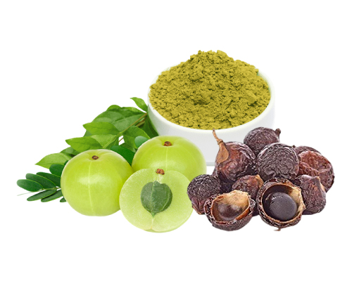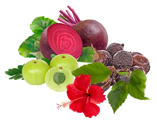 Henna leaves | Brahmi | Amla | Shikakai | Aritha | Kalonji | Methi | Neem | Curry leaves | Tulsi | Hibiscus leaves and flowers | Ashwagandha | Moringa | Manjistha